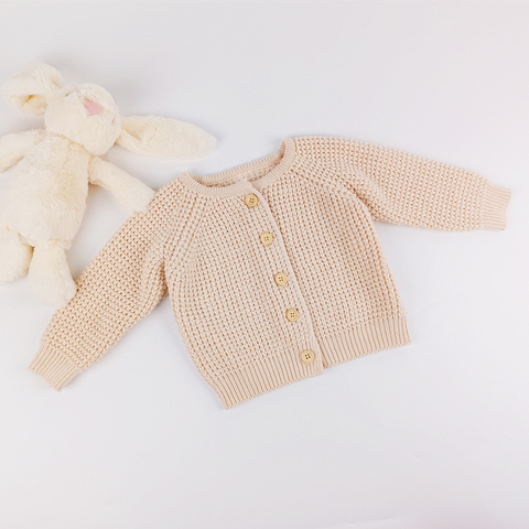 Pinuotu Baby Knitted Cardigan OEM Custom Quality Cotton New Born Baby Girl Simple Solid Knit Sweater Cardigan Clothes
